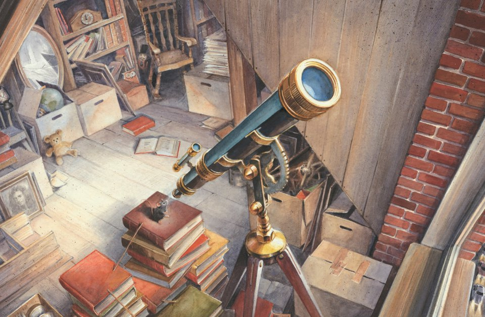 Каждую ночь один маленький любознательный мышонок сквозь телескоп наблюдает за Луной.