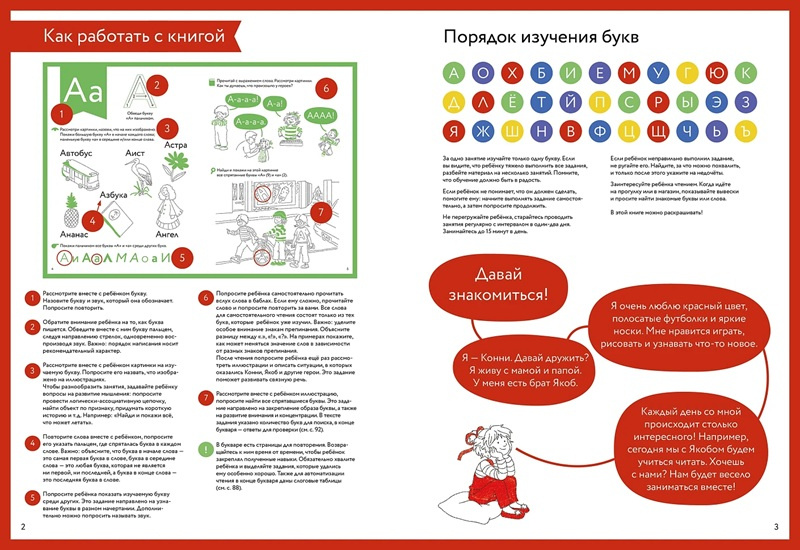 Этот яркий букварь познакомит вашего ребенка с буквами, научит узнавать их в словах и поможет сделать первые шаги в самостоятельном чтении. И все это вместе с любимыми героями — Конни и ее братом Якобом.