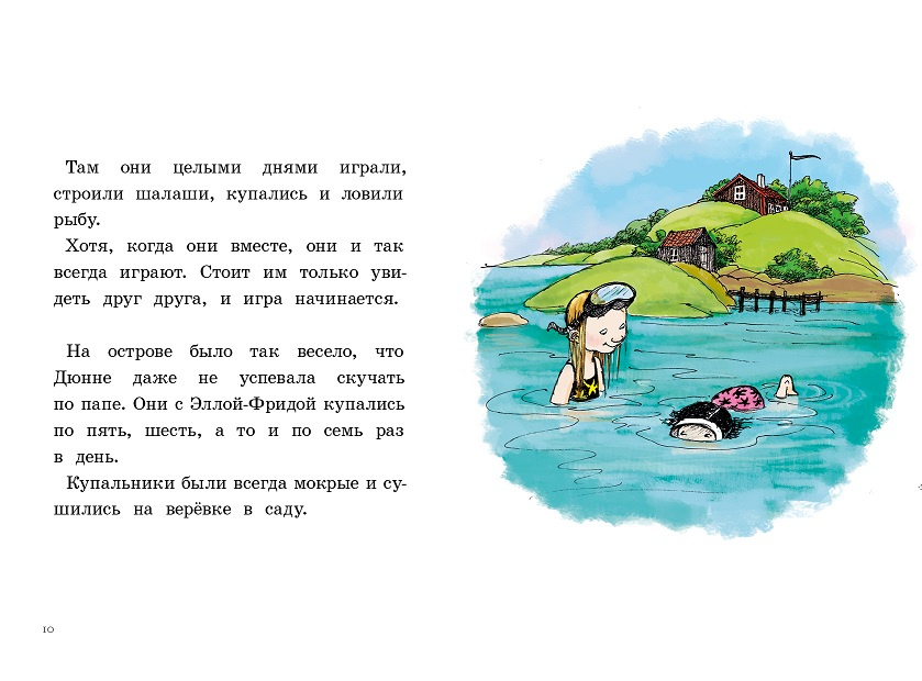 Долгожданные летние каникулы Дюнне - той самой, что живет на Хумлевеген и закончила первый класс - предстоит провести в гостях у лучшей подруги Эллы-Фриды в большом доме на острове. Лето проходит замечательно: девочки купаются по пять-шесть раз в день, играют и веселятся, а ещё - подрабатывают.