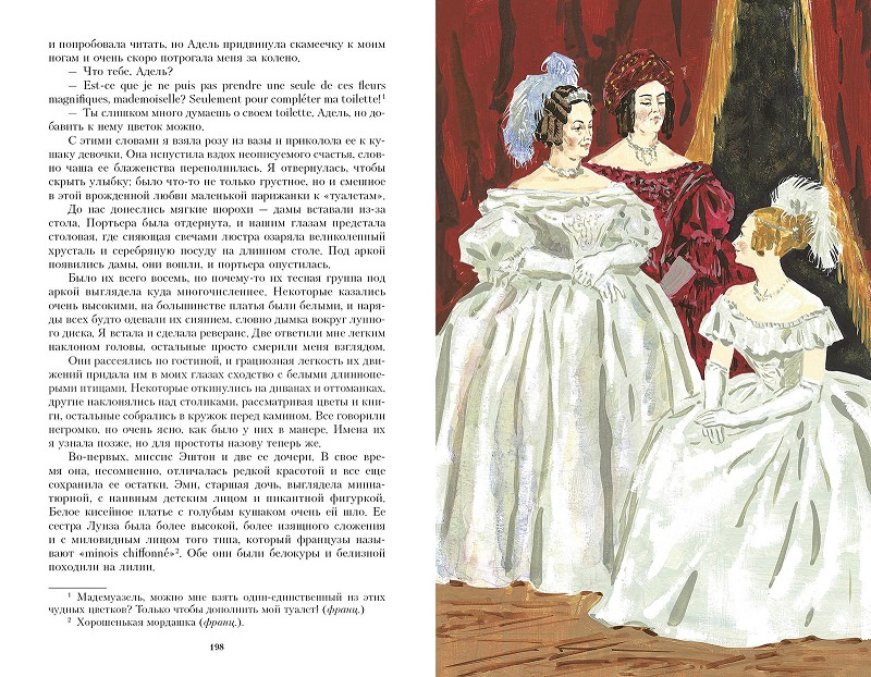 Художница Евгения Мельникова увидела в героях романа не только участников любовной драмы, но представителей той эпохи, когда женщинам приходилось отстаивать свое право на независимость, а мужчины считали нежность слабостью.