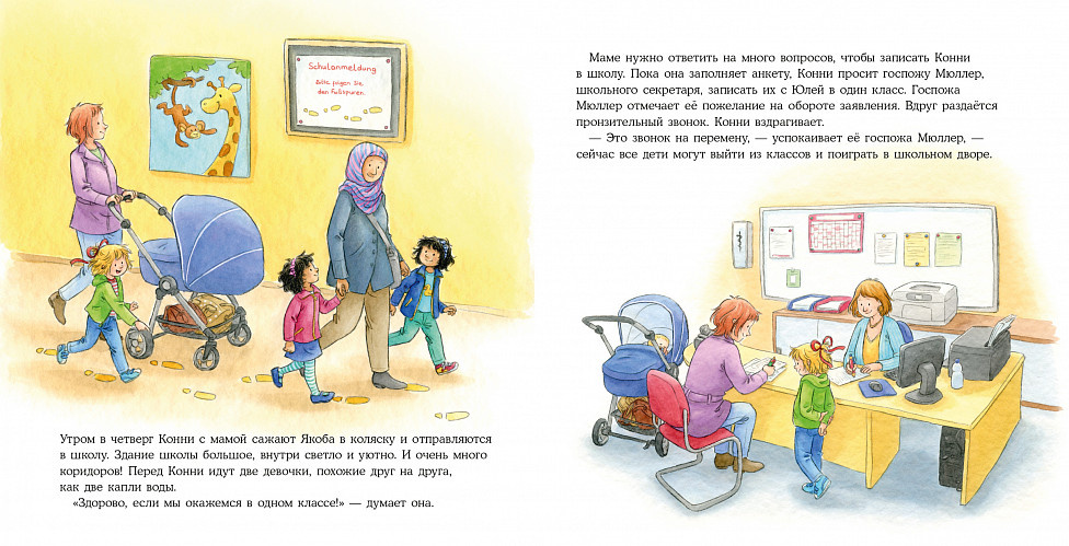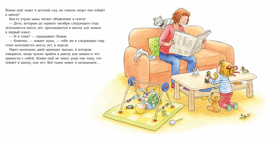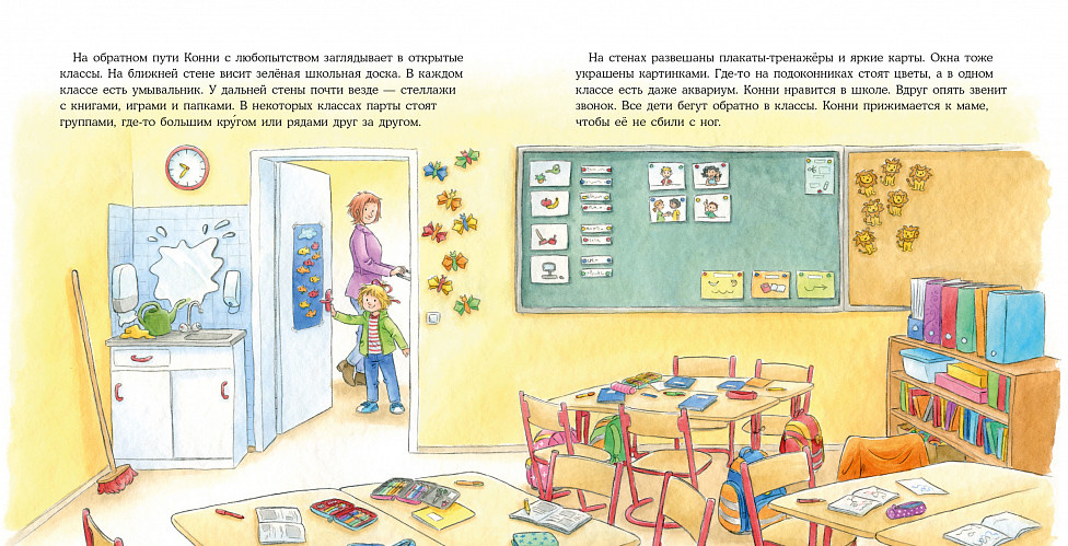 Вот и Конни идёт "первый раз в первый класс". Вместе с ней ваш ребёнок узнает, каким может быть знакомство со школой и что понадобится для учёбы, и поймёт, что школа — это здорово!