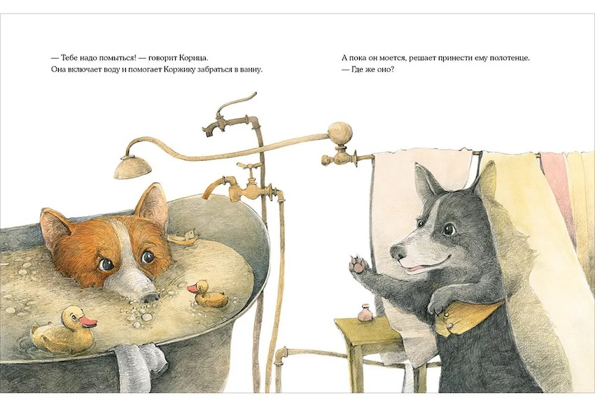 Однажды две весёлые собачки Коржик и Корица остались дома без хозяина. И что тут началось! Друзья полакомились паштетом, разбили цветочные горшки, разлили краску, да ещё и нашли применение хозяйской рубашке… И всё-таки они старались вести себя хорошо, хотя делать это одним им оказалось очень трудно!