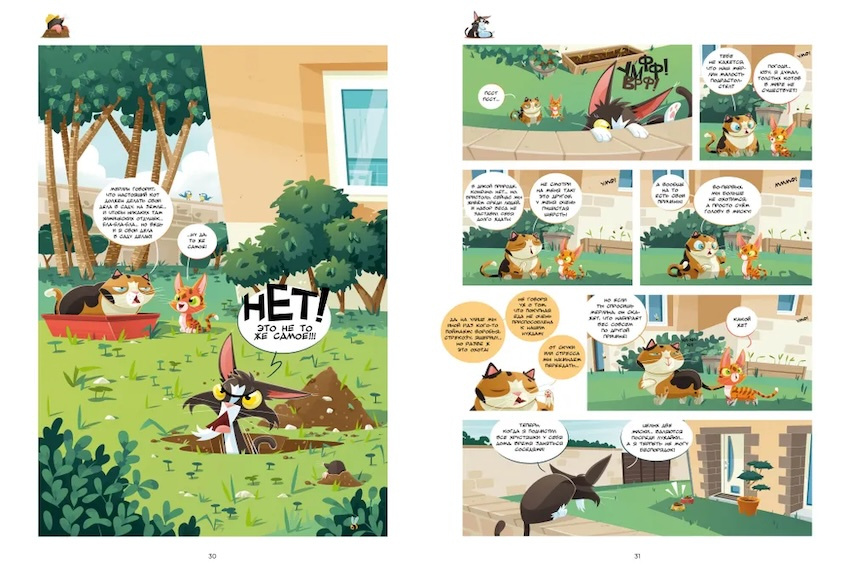 На примерах простых ежедневных ситуаций персонажи комикса рассказывают о жизни кошек, особенностях их поведения и распорядка дня. Короткие одностраничные истории хорошо иллюстрируют специфику кошачьих привычек. А если вы уже относитесь к числу счастливых обладателей кота или кошки, то они, возможно, помогут вам решить некоторые проблемы, понять кошачьи «странности» и преодолеть стрессовые ситуации в жизни питомца.