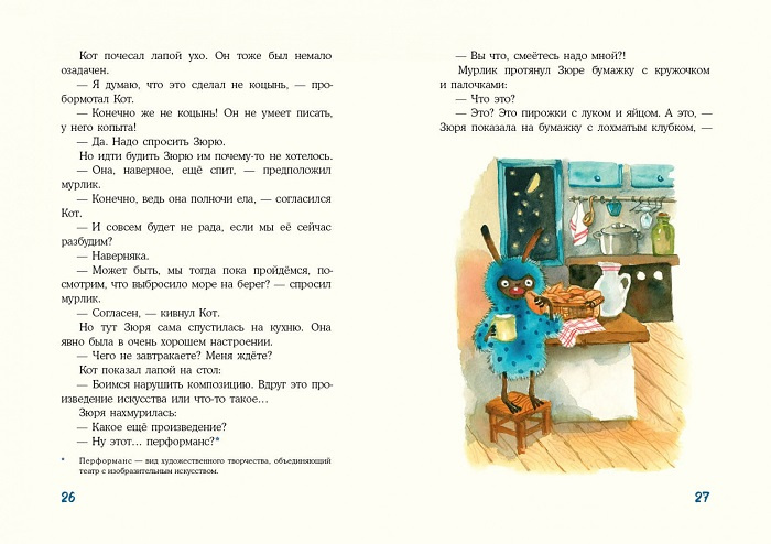 Несмотря на радушный приём, Зюря, а это была именно она, никак не хотела дружить с хозяевами домика. Вечно со всеми ссорилась, уходила гулять сама по себе, однажды даже уплыла на необитаемый остров… а ещё то и дело меняла цвет шубки. Но Кот и мурлик помогли Зюре понять очень важную вещь: друг не обязан во всём с тобой соглашаться, но он всегда будет рядом - несмотря ни на что.