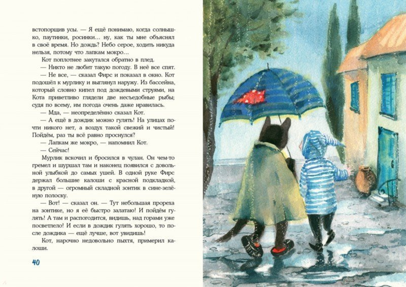 Но со временем Фирс понял, что первое впечатление обманчиво, и их с Котом знакомство переросло в крепкую дружбу. Ведь на самом деле Кот чувствовал себя одиноким и ему очень нужен был кто-то, с кем можно вместе гулять под дождём, смотреть на море, шутить, улыбаться и просто мечтать?