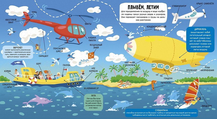Знаете ли вы, как устроена снегоуборочная машина? Почему самолёты и вертолёты летают? Какие машины нужны, чтобы построить дом? На каждом развороте подробный и очень понятный рассказ о том, какие бывают машины, поезда, и о том, как они работают и для чего служат. Ответы на эти и многие другие вопросы вы найдёте в нашей увлекательной книге.