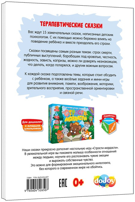 Это 3в1для комплексного развития детской психики, набор объединяет в себе три ключевых элемента: сборник сказок, настольную игру и развивающие мини-игры. В этом комплекте "Страсти-мордасти" собраны 45 терапевтических историй и 119 увлекательных мини-игр, которые помогут донести до вашего малыша не только важные жизненные уроки, но и полезные навыки.
