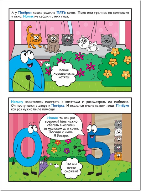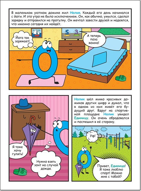 А еще на страницах этой книжки вас ждут ваши старые знакомые — все цифры. Занимательная история, проиллюстрированная харизматичными картинками, гарантированно увлечет даже самого «нечитающего» ребенка.