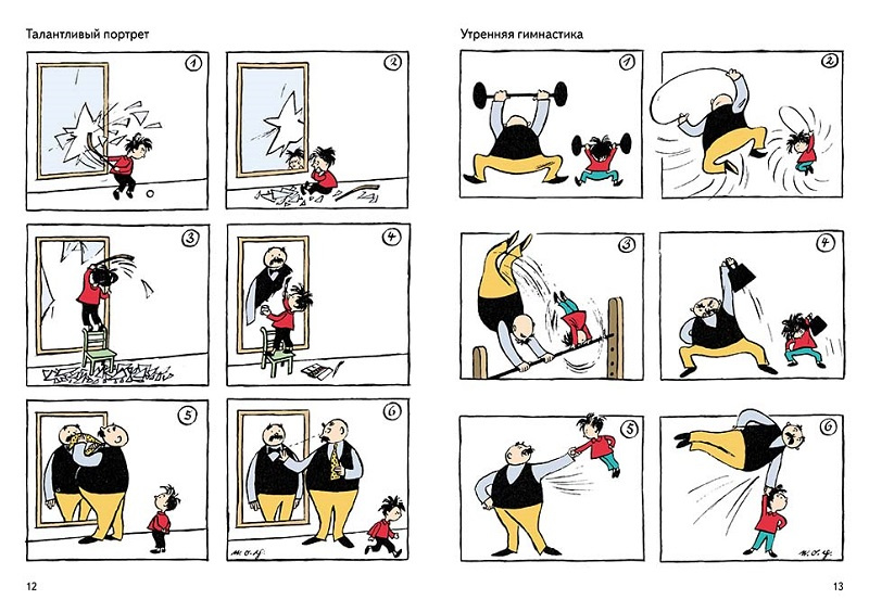 Короткие комиксы или, как их ещё называют, «рисованные пантомимы» о похождениях пузатого лысого папаши и его озорного лохматого сынишки – знаменитые на весь мир работы немецкого художника-карикатуриста Эриха Озера (1903-1944), работавшего под псевдонимом Э.О. Плауэн.