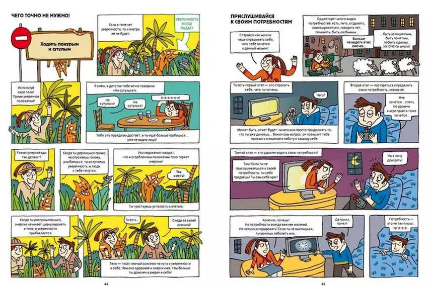 Уверенность в себе — очень важная штука! Если ты уверен в себе, то знаешь наверняка, что способен сделать всё, что пожелаешь, не боишься быть самим собой и понимаешь, что всегда и во всём можешь на себя рассчитывать. Но как этого добиться? Герои этого комикса раскроют тебе все секреты. Что такое быть себе другом? Как это, узнать себя по-настоящему? Зачем прислушиваться к себе? Скорее открывай книжку!