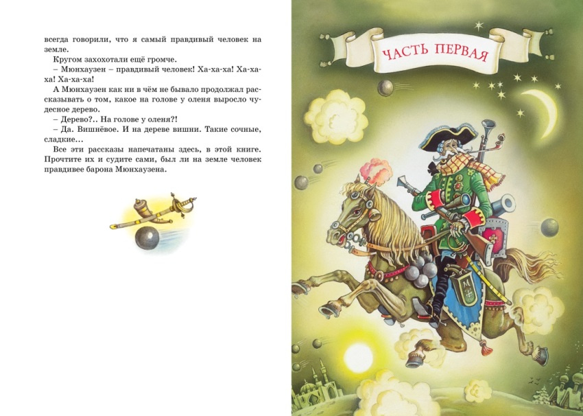 Барона Мюнхаузена знают во всём мире – он прославился рассказами о своих необыкновенных приключениях. Согласитесь, вряд ли кому ещё удастся поджечь порох искрами из глаз или забраться по стеблю боба на Луну! А кто не помнит его историй о полёте на ядре или о дереве на рогах оленя, которое выросло из вишнёвой косточки?! Несмотря на всю их неправдоподобность, мы тем не менее в них верим. Как верил в них сам барон Мюнхаузен, «самый правдивый человек на земле»!