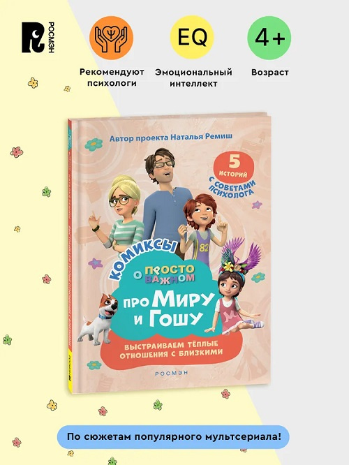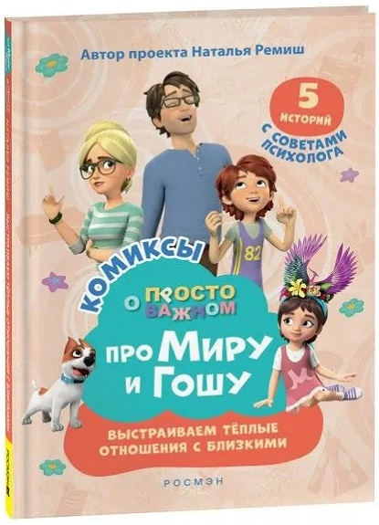 Полезные истории про Миру и Гошу в формате комиксов от писательницы и продюсера Натальи Ремиш. В развивающую книгу для детей вошли 5 сюжетов из популярного мультфильма с комментариями психолога.