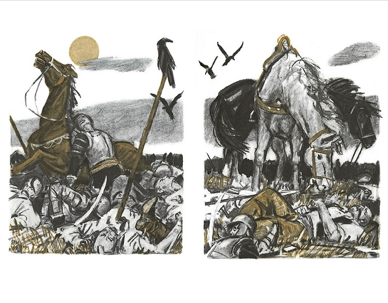 Яркие, сочные иллюстрации Дементия Шмаринова сочетают в себе и полноту жизни героев, и трагедию ее окончания.