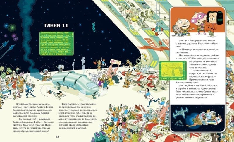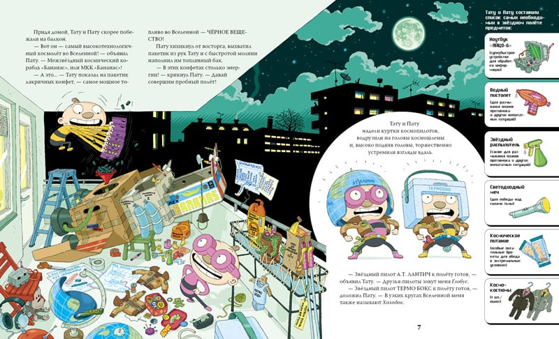 Вперед, вверх и в космос! - крикнул Тату, когда межзвездный космический корабль "Бананас", или МКК "Бананас", взмыл в небо. Звездные пилоты А. Т. Лантич, или Тату, и Термо Бокс, или Пату, отправились в космическую даль