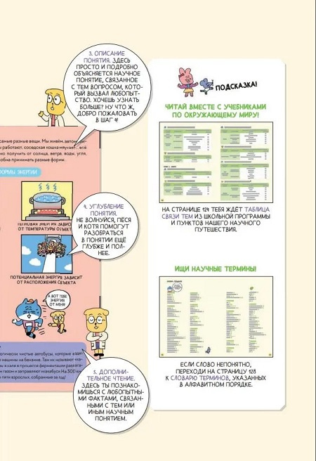 Каждый разворот посвящен определенному научному понятию и отвечает на неожиданный вопрос - например, о миражах в пустыне или лазерных мечах из фантастических фильмов. А сопровождается все забавными комиксами, благодаря которым легко разобраться даже в непростых темах. Удобная структура, легкая подача и удачный выбор тем, согласованный со школьной программой - благодаря этим свойствам книга не только поможет ребенку утолить любопытство и углубить знания, но и станет отличным дополнением к учебнику по окружающему миру.