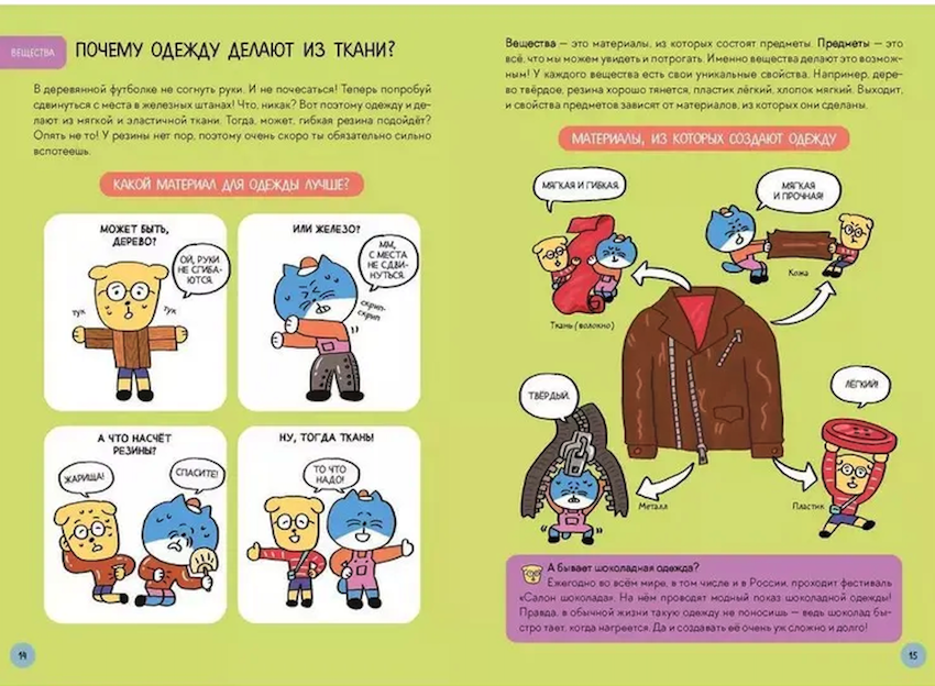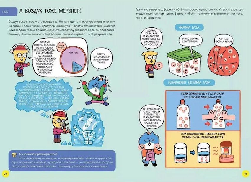 Каждый разворот посвящен определенному научному понятию и отвечает на неожиданный вопрос о явлениях вокруг нас — от приготовления лапши до поездки на автомобиле. А сопровождается все забавными комиксами, благодаря которым легко разобраться даже в непростых темах.