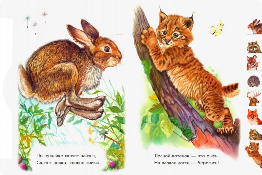А волшебная лесенка поможет малышу легко найти страничку с любым животным.