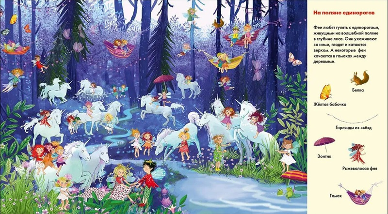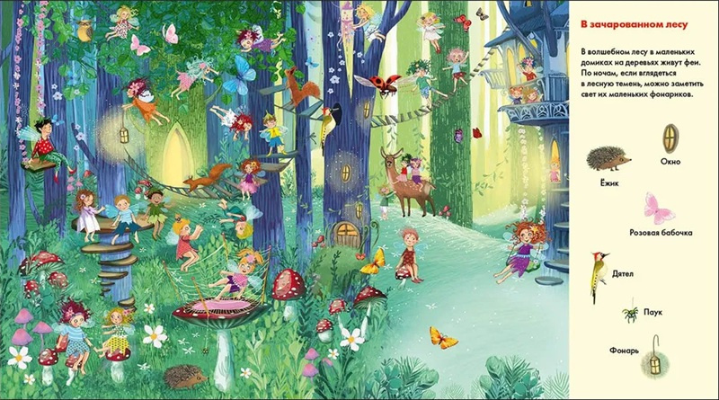 Главное - внимательно разглядывай рисунки и найди зверей, птиц, насекомых и множество любопытных вещей, которые окружают весёлых фей.