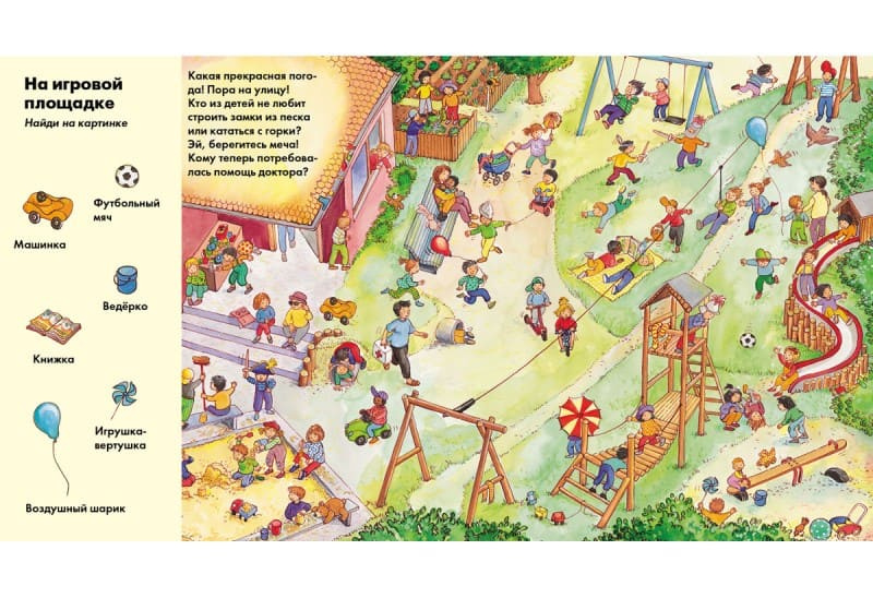 И ещё одно задание: назови все игрушки, с которыми играют дети в этом детском саду.