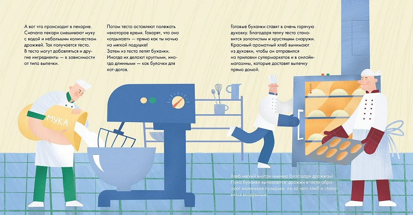 В конце книги есть несколько рецептов с хлебом и из теста, а также гид для родителей, который расскажет, как нормировать количество хлебобулочных изделий в рационе ребенка.