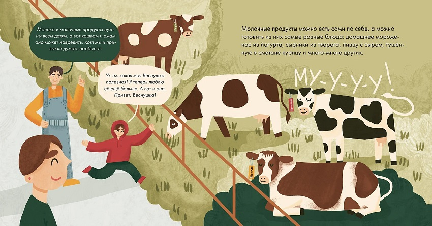Правда ли, что шоколадное молоко получается, если корове дать шоколад? Эта книга расскажет все о молоке и молочных продуктах. Вместе с главным героем, мальчиком Лёвой, вы попадете на настоящую ферму, и узнаете, как она устроена. А еще выясните, чем коровье молоко отличается от верблюжьего, как делают любимые йогурты, сливочное масло и даже сыр, почему детям обязательно нужно есть молочные продукты, а угощать ими кошек или ежей не стоит.