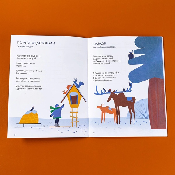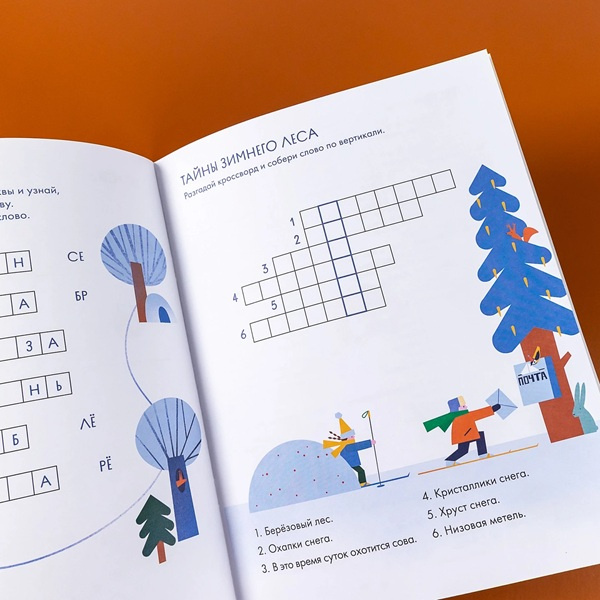 Сборник «Зимний лес» включает в себя кроссворды, сканворды, головоломки, ребусы и загадки, посвященные природе зимой. Решая задания, ребенок узнает, какие животные впадают в спячку, чем питаются птицы в зимнюю пору, какие деревья остаются зелеными даже в холода. А еще просто поиграет и повеселится, читая забавные стишки, разгадывая загадки и проходя лабиринты.
